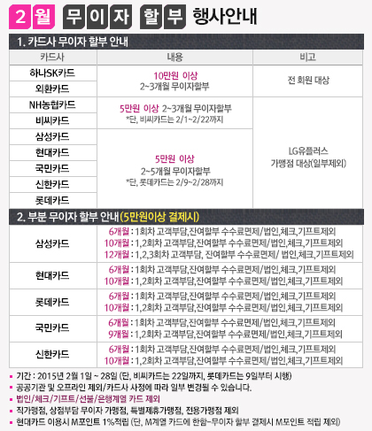 다음글 ▲ | 2015년 3월 무이자 할부 행사안내 | 관리자 | 2015-03-03 | 8919 |