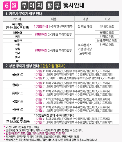 2015년 6월 무이자 할부 행사안내